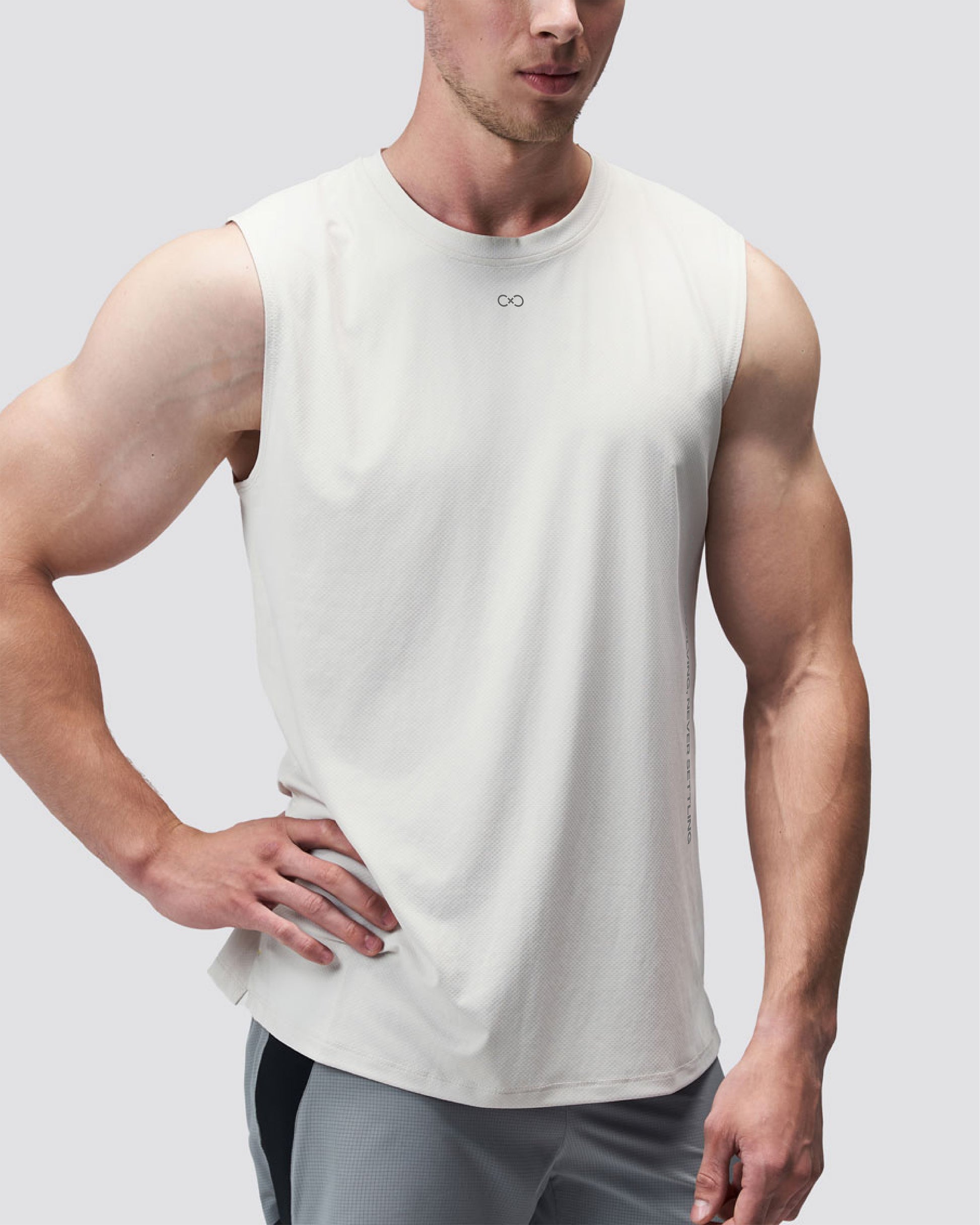 The Training Cut-Off is crafted from a revolutionary fabric infused with copper elements, offering an innovative blend of antimicrobial and abrasion-resistant properties. This exceptionally breathable, ultra-lightweight, yet durable performance fabric is perfect for all types of training or any daily activity.