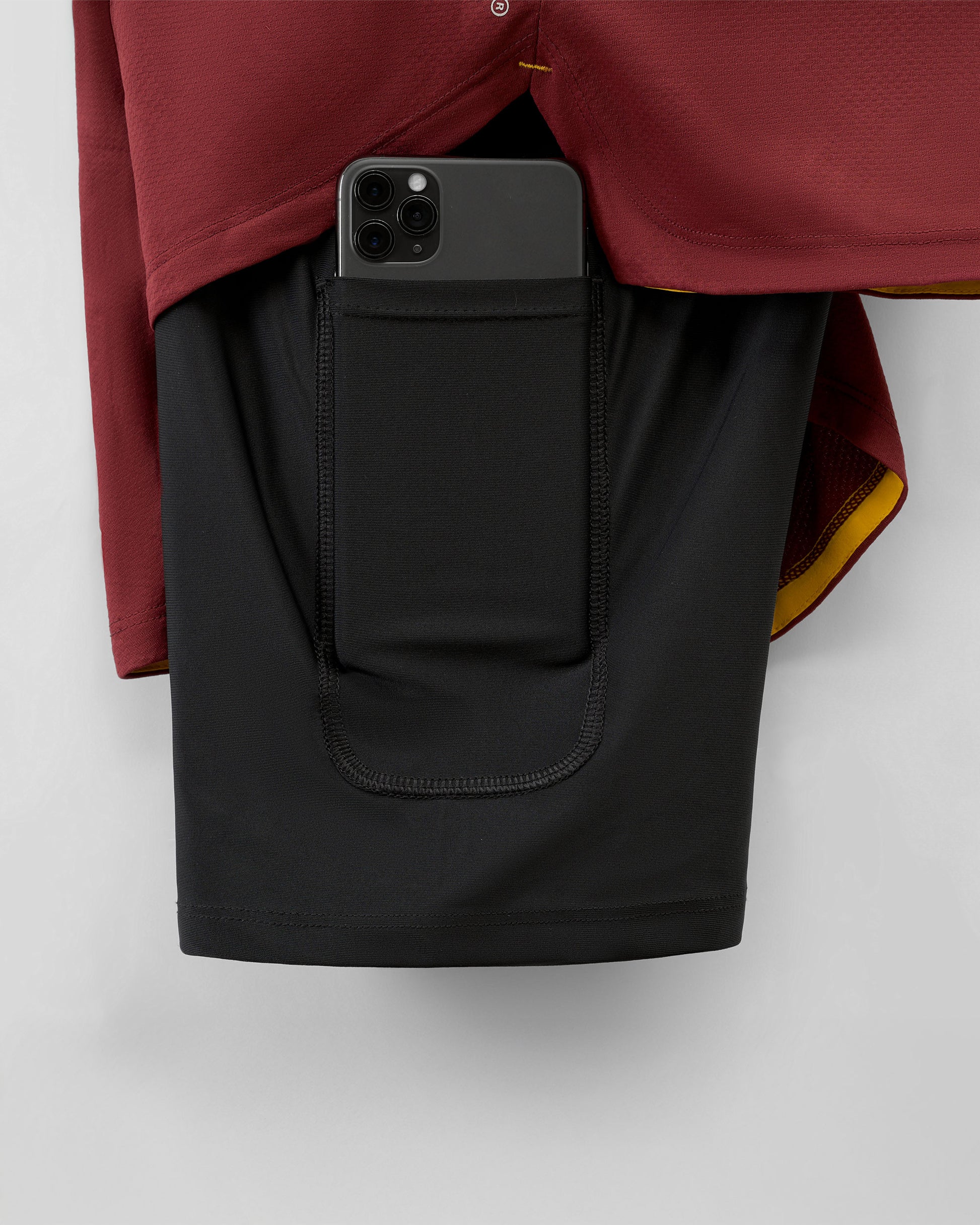 Liner phone pocket keeps your phone secure through the most intense workouts.